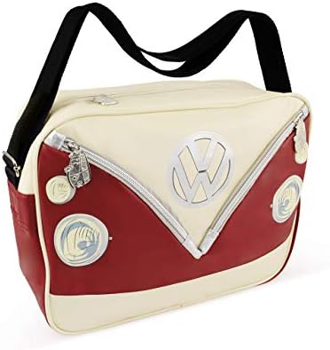 - Bus FRONT: the shoulder bag is in red and cream, with two exterior pockets in VW Bus design, and an adjustable wide shoulder strap. Dimensions: 34 x 11 x 26 cm (13.4 x 4.3 x 10.2 inches).