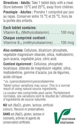 Jamieson B12 100 mcg (METHYLCOBALAMIN), 100 tablets