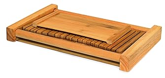 4 Groove sizes allows you to slice 3 Different slices - 1.2cm, 1.0cm, 0.8cm WARNING: Please be cautious not to cut off Splinters of the Wood. Made form 100% bamboo Wood, Natural, environmental friendly and pollution free Great for bakery and homemade bread, even loaf cakes - Designed to fold easily for compact storage Dimensions: 12" x 6 ½ x 6 ½ (high) Folded: 12" x 7 ½ x 1 ½ (high)