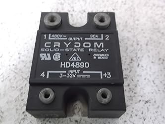 Price For: Each Case Color: Black Item: Solid State Relay Finger Safe: No Turns On At: Zero Cross Standards: UL, CSA, VDE, CE Switch Type: SCR Mounting: Surface Input Voltage: 4 to 32VDC Voltage Output: 48 to 530VAC Phase: 1 Max. Output w/Heat Sink: 90A Country of Origin (subject to change): Mexico