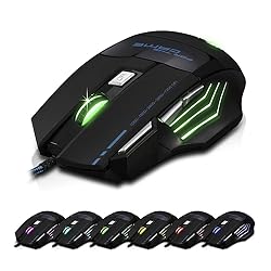 AFUNTA Zelotes Ergonomic 7200 DPI LED Optical Wired Gaming Mouse Mice 7 Buttons Compatible Mac Pro Gamer PC Laptop Desktop Notebook-Black Black(T80)