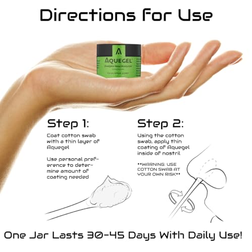 - DRY NOSE, NASAL CRACKING, NOSEBLEEDS - Stop suffering! Aquegel's nasal gel provides non-medicated relief for dry nasal passages, cracked noses, nosebleeds, and nasal irritation. Safe for all ages, and has zero use restrictions.