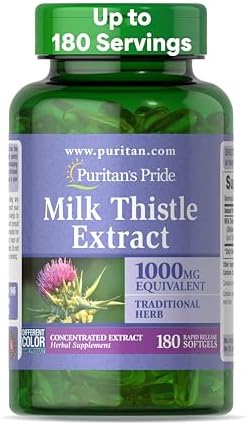 Puritan's Milk Thistle 4:1 Extract 1000mg 180 Softgels (Silymarin) Liver Health