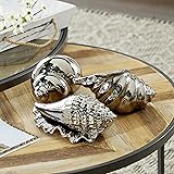 Deco 79 Ceramic Shell Decorative Sculpture Shell Home Decor Statues, Set of 3 Accent Figurines 7", 7", 5"W, Silver