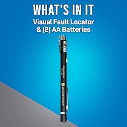 WHAT'S IN IT: Visual Fault Locator & (2) AA batteries VERSATILE USE: 650 nm Class IIIA laser diode identifies faults in single and multi-mode fiber up to 3 miles long, works in OTDR dead zones, and is used for end-to-end visual fiber identification UNIVERSAL CONNECTION: Universal connector accommodates 2.5mm ferruled connectors, such as FC, SC, and ST connectors ADJUSTABLE MODES: Has three different modes: Continuous wave, pulsing, and slower pulsing mode CONVENIENT DESIGN: Light and portable pen-style design is perfect for on the go use with 60 hours of battery life powered by two AAA batteries (included)