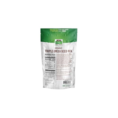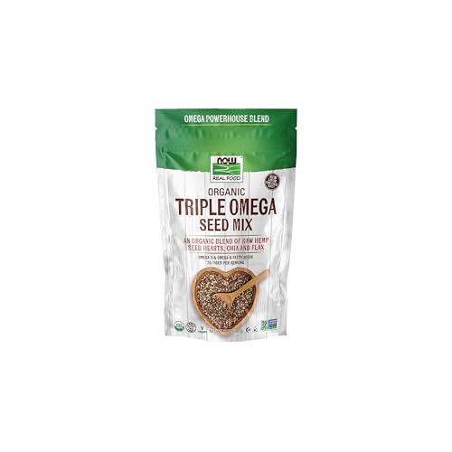 NOW Foods, Organic Triple Omega Seed Mix, Raw Hemp Seed Hearts, Chia and Flax, Omega-3 and 6 Fatty Acids, Source of Fiber, Protein and Iron, Gluten-Free, 12-Ounce (Packaging May Vary)