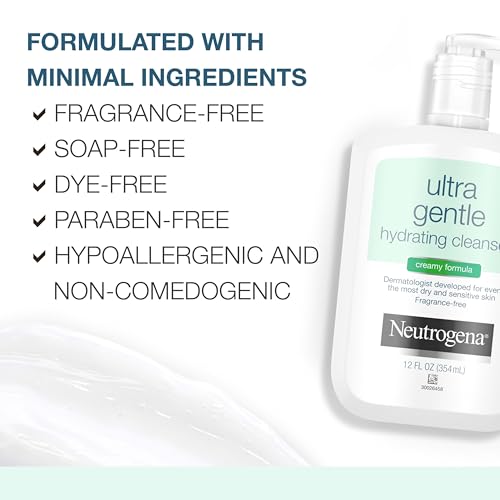 • BotBotella de 12 onzas líquidas de Neutrogena Ultra Gentle Hydrating Facial Cleanser para piel sensible limpia eficazmente el rostro mientras deja la piel sintiéndose hidratada y naturalmente suave todo el día