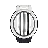 Quickly and easily slice hard-boiled eggs into perfect 5 mm slices Holder cradles egg in two directions for round or oblong slices Raised handle for easy opening and closing Non-slip base provides a comfortable grip while slicing over a bowl or plate Top-rack dishwasher safe