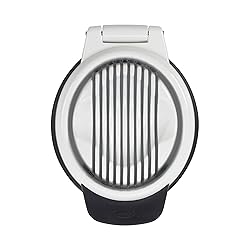 - The OXO Good Grips Egg Slicer is a simple solution for quickly and easily slicing hard-boiled eggs. This no-fuss Slicer yields perfect 5 mm slices with one simple press. The holder cradles the egg in two directions, giving you the option of round or oblong slices. The raised handle is easy to open and close and the non-slip base provides a comfortable grip while slicing over bowls or plates. Top-rack dishwasher safe.