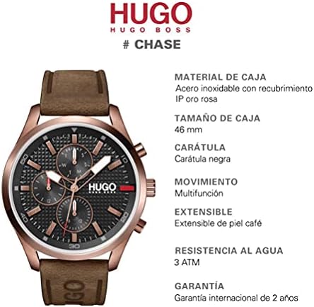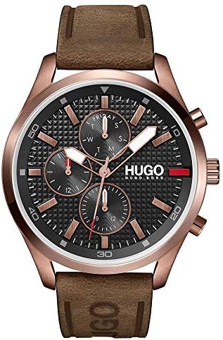 Hugo #Chase Men's Multifunction Stainless Steel and Leather Strap Casual Watch, Color: Brown (Model: 1530162)