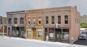 Kit that Requires Assembly Colorful decal signs for a variety of stores 2 different front cornices Separate back porch, stairways and downspouts HO scale building kit