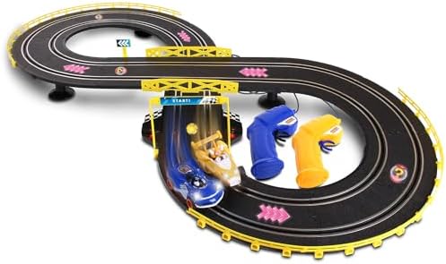 - Incluye 2 vehículos, 2 controles y 16 piezas de pista.