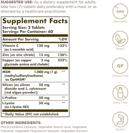 Solgar Skin, Nails & Hair - 120 Tablets, Pack of 2 - Advanced MSM Formula - Non GMO, Vegan, Gluten & Dairy Free - 120 Total Servings