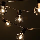 This G40 globe string lights set includes one 100ft Black light string and 105 G40 Clear glass light bulbs. The outdoor black light string has C7 E12 sockets spaced every 12". The length from the plug to the first light bulb is 6". Our G40 clear globe light bulbs are 5 watts each and 1.6" tall by 1.6" wide. Manufactured with UL listed heavy duty 18-gauge SPT-1W wire and rated for up to 959 watts (8 amps)-commercial quality durable light string. Long-life dimmable bulbs last for 3,000 hours. They feature a high-quality nickel base and use 130 volts. These waterproof plug-in lights are for indoor and outdoor use year-round. If one bulb burns out, the rest will stay lit. This 100 ft set has a two-pronged plug and ends with a socket. It can be plugged into our shorter string light sets. Using G40 5-watt bulbs, you can connect up to 175 feet for long outdoor string lights! Perfect outside hanging vintage lights for your yard, garden, porch, pergola, canopy, gazebo, festival, and more! We want to make sure you are 100% satisfied with your purchase. Hometown Evolution, Inc. is an American business. We strive for excellent customer service provided by real people. Please get in touch with us if you have any questions or concerns.