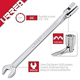 URREA 12-Point Flex Head Socket Wrench - 3/4" Flexible Head Combination Wrench with Ratchet Box End & Fixed Open End - 1270-24 PIVOTING SOCKET HEAD - 12-point flex head socket rotates 180 degrees for maximum versatility and leverage in tight, confined work spaces FULLY POLISHED CHROME FINISH - Corrosion and rust resistant nickel chrome finish cleans up easily and provides enhanced durability for extended tool life FORGED FROM USA STEEL - Hot drop forged with tool grade American steel to provide highest quality, longest lasting wrenches available BUILT FOR THE TRADESMAN - Designed for the automotive professional, maintenance technicians, auto and aviation mechanics, professional contractors, iron workers, heavy machinery, the oil and gas industry and more