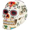 Pacific Giftware Day of The Dead White Colorful Sugar Skull Polyresin Figurine Halloween Decoration Dia de Los Muertos Altar Decor Gothic Home Collectible 6" H
