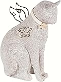 Measures: 4.5" H x 4" W x 2.25" D Hand painted resin Carved stone-like look Angel wings and "loved" adorn the cat figure Sure To Be a Treasured Keepsake