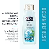 OCEAN REFRESH REVITALIZING CONDITIONER: Alberto VO5's unique formula blended with the Power of Five vitamins and 5 natural oils provides beautiful soft, shiny hair. That’s the secret of VO5. 12.5 oz. Bottle BLENDED WITH NATURAL SEA MINERALS: Catch the wave of freshness, and wash away your hair’s impurities with Ocean Refresh, leaving your hair soft and healthy looking. The long-lasting fragrance leaves your hair smelling perfectly fresh. IT’S WHAT’S INSIDE THAT COUNTS: Alberto VO5 offers a unique formula blended with the Power of Five vitamins and oils to revitalize hair to look and feel beautiful. Vitamins Include: B3, C, E, B5, Biotin. Oils include: Sunflower Seed Oil, Mango Seed Oil, Sweet Almond Oil, Rosemary Leaf Oil, Chamomile Flower Oil. FREE OF: Parabens, Mineral Oil, Silicone. OUR STORY: Developed fifty-years ago by Alberto Culver for Hollywood actresses’ dry, damaged hair, the brand’s unique “Power of Five” — 5 vitamins and 5 oils — became the trusted staple in most everyone’s homes. Delivering weightless moisture and soft shiny hair.