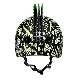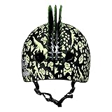 - Make a ferocious statement with the Raskullz T-Rex Bonez Mohawk Toddler Bike Helmet in green and black. This dinosaur-inspired bike helmet has bright green dinosaur skeleton images printed over the entire helmet. It also features an eye-catching 2” tall bendable black 3D mohawk with bright green tips. Perfect for tearing it up like a dinosaur on a bike, scooter, or skateboard. Recommended for ages 3-5 years old with heads measuring 48-52cm.
