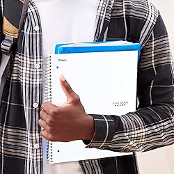 - LASTS ALL YEAR. GUARANTEED! Scan, study and organize your notes with the Five Star Study App. Create instant flashcards and sync your notes to Google Drive to access them anywhere from any device. This Five Star 1 subject notebook has 100 double-sided, college ruled sheets for organized notetaking. The sheets fight ink bleed and are perforated for quick and easy tear out. The sheets measure 8-1/2" x 11" when torn out. Tough pockets help prevent tears and hold 8-1/2" x 11" loose sheets, handouts and more. Durable plastic front cover is water-resistant to help protect your notes all year long, while Spiral Lock wire helps prevent snags on clothes and backpacks. The notebook pages are made with SFI certified paper. This notebook is recyclable – just remove the reinforcement tape on the pocket and recycle the rest! Available in White. Guarantee is valid for one year from purchase or delivery date, whichever is longer. Does not cover misuse.