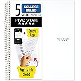 Five Star Spiral Notebook + Study App, 5 Subject, College Ruled Paper, 8-1/2" x 11", 200 Sheets, Fights Ink Bleed, Water Resistant Cover, White (72460)