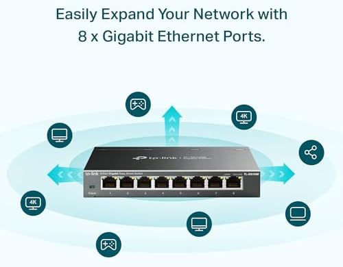 - 8 P𝗼𝗿𝘁𝗼𝘀 G𝗶𝗴a𝗯𝗶𝘁𝗲 E𝘁𝗵𝗲𝗿𝗻𝗲𝘁: expande tu red con 8 puertos Ethernet de alta velocidad