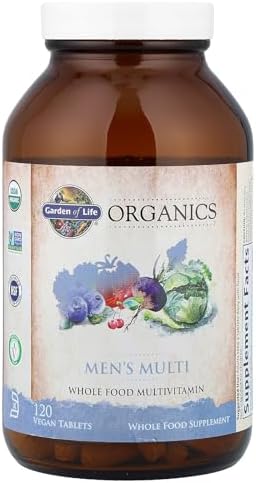 Garden of Life Organics Whole Food Multivitamin for Men, 120 Tablets, Vegan Mens Vitamins and Minerals for Health and Well-Being, Certified Organic Vegan Multi