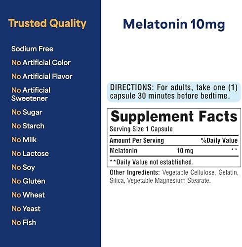 - APOYA UN SUEÑO PROFUNDO: Los 240 cápsulas de liberación rápida de Melatonina 10mg de Puritan’s Pride están diseñados para ayudarte a conciliar el sueño rápidamente y permanecer dormido por más tiempo. Con 10 mg de Melatonina por cápsula, este suplemento ayuda a mejorar la calidad general de tu sueño*