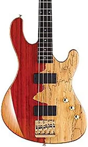 The bass features an alder body with a beautiful exotic wood top. Outfitting the body are a pair of Bartolini Jeff Berlin custom soapbar pickups, a Babicz Full Contact Hardware bridge, one volume control, one balance control, one tone control, passive electronics, and gold hardware. The hard rock maple neck is complemented with a rosewood fingerboard and four inline headstock featuring Hipshot Ultralite tuners. The action on the bass is low, and it is set up with DR Strings Custom DDT (Drop Down Tuning) for easy playing. "After playing the same bass for so many years I was not sure that another builder could develop something that I would love. As soon as I played the very first Cort Rithimic bass, I was wowed. I could not believe how perfectly this bass turned out. This is an astonishing instrument that Cort has built for me." Custom designed body with the beautifully visualized Spalted maple and Padauk top make you try to play the bass. The alder body has its own unique clarity and brightness. The only one existing Custom Soapbar pickups for neck and bridge designed by Jeff Berlin offer warm, deep tones with a piano-like low end. The pickups are a split coil design with a well-defined magnetic field aperture for maximum clarity and tonal response. The full contact hardware technology results in an increased dynamic range, increased sustain, pitch stability. String action and intonation adjustments remain secure, even when removing strings. The Rithimic is equipped with Hipshot Ultralite Tuners (classic 20:1 tuning ratio) that is made of cast zinc with aluminum strings posts and mounting nuts, resulting in 30% weight reduction over other regular tuners and which results in improved balance and tuning accuracy. Specifications: - CONSTRUCTION: Bolt-on - BODY: Alder - TOP: Spalted Maple & Padauk - NECK: Hard Maple Neck - FRETBOARD: Ebony - Radius: 12"(305?) - FRETS: 21 - SCALE: 34"(864?) - INLAY: Abalone - TUNERS: Hipshot? Ultralite - BRIDGE: Babicz? FCH4(Full Contact