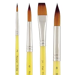 While Wood handles are traditionAlly the preferred style for artists the world over there is a growing need to have handles that do not crack or chip when soaked in water or solvents. This is particularly true in classroom, public, private or social settings. Creative Inspirations brushes are Available with both long or short handles and are made to last longer than the traditional brushes that artists Use in their private studios. Versatile Synthetic Taklon Hair: Crafted with three different diameter synthetic taklon hair, this brush is soft, resilient, and perfect for all traditional media including oils, acrylics, and watercolors; Ideal for artists seeking superb control Superior Nickel-Plated Ferrules: Fitted with nickel-plated brass ferrules, the Dura-Handle flat paint brush provides a secure and durable connection between handle and bristles, outperforming cheap plastic alternatives and ensuring longevity Easy to Clean and Reuse: This synthetic painting brush set is designed for easy cleaning and reuse; The taklon paint brushes maintain their shape to a square edge, making them perfect for precise flat brush painting and other detailed work Perfect for Various Techniques: The acrylic paint brush from the Dura-Handle series is perfect for flat paint brushes for acrylic painting and other free form paint brush techniques, offering unmatched control and versatility for artists