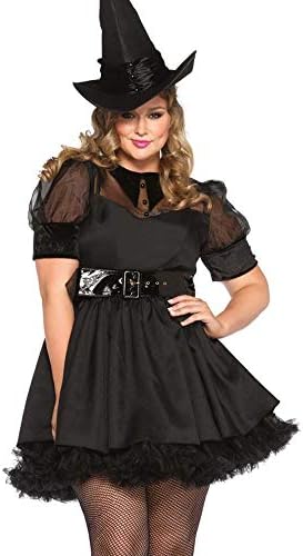 There is no hocus pocus about how enchanting You'll look in the Leg Avenue Plus Size Bewitching Witch costume set. This pin-up inspired witch costume includes a vintage style dress with organza bodice, wide belt and matching hat. The flirty A line skirt and sexy sweetheart illusion neckline create a spellbindingly sexy combination that flatter almost any body type. Create a seductive silhouette with the organize puff sleeves and velvet collared bodice. Add the finishing touch to this spellcasting look in the classic witch hat with satin fabric and curved brim. Wrap the matching wet look wide belt around you for a waist-defining illusion. Check out the Leg Avenue fairytale and witch costume collection for group or couples costume ideas. Great for Halloween, cosplay or theme costume parties. Why Leg Avenue? Whether you want to wrap up in glamorous vibes or extra-AF ensembles, our goal at Leg Avenue is to make everyone feel confident and sexy no matter the occasion. From costumes to lingerie to festival wear, Leg Avenue has a little something something for everyone.