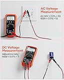 【More Versatile than Expected】MS8233D multimeter can accurately measure DC/AC voltage, DC/AC current, resistance, capacitance, frequency, and duty cycle, test continuity and diode, and detect live wire and NCV. 【User and Device Protection】The digital multimeter conforms to IEC61010-1 CAT III 600V safety standard. Two built-in fuses provide overload protection on all ranges. Insulated rubber holster prevents the user from electric shock. 【6000-Count LCD Screen】Equipped with a 6000-count (3 5/6 digits) LCD display, the multimeter tester gives clear and accurate readings. Bright backlight allows for working in the dark places. 【More Powerful Features】The multi tester features practical functions, such as switchable manual/auto range modes, max/min value, data hold, low battery indicator, and auto power off. The multimeter has a sampling speed of 3 times per second. 【Non-Contact Voltage Detector】Non-contact voltage testing has sound and light alarms. When AC voltage is detected, the buzzer beeps and light flashes. The stronger the AC voltage is detected, the faster the buzzer beeps. 【Wide Range of Uses】This Multimeter is designed to troubleshoot a variety of automotive and household electrical problems safely and accurately. A good helper for electrician test, household use, automotive, industrial electrical problems. 【All-in-One Set】The MS8233D Multimeter also comes with 1 pair of probe test leads, 1 pair of alligator clips, 2 AAA batteries (1.5V each), 1 carrying box and 1 user manual to make it perfect for home, school, lab and factory use.