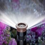 PRECISION ARC CONTROL FROM 0° TO 360°: Get pinpoint accuracy for any zone shape or edge. Whether you're watering a narrow walkway or full lawn circle, fine-tuned arc settings ensure no water is wasted. 8-FOOT SPRAY RADIUS FOR TARGETED COVERAGE: Designed for smaller or high-precision zones, this nozzle delivers balanced water distribution that protects roots, reduces runoff, and supports healthier lawns. WIND-RESISTANT DROPLET DESIGN: Generates larger, heavier droplets that cut through wind and minimize misting, so your landscape gets water where it matters—even in open or breezy areas. TOOL-FREE FIELD ADJUSTMENTS: Built for real-world conditions with a textured top grip, this nozzle adjusts quickly by hand—even when wet—making it ideal for DIYers and pros on the go. UNIVERSAL FIT WITH FILTER INCLUDED: Snaps securely onto most pop-up sprinkler bodies and includes a debris-filtering screen to prevent clogs and maintain long-term spray performance.