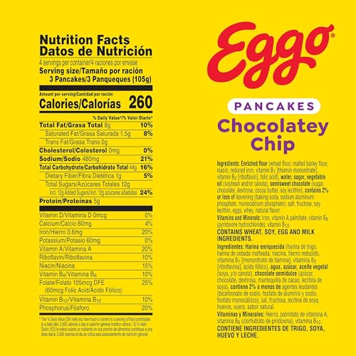 - Includes 1, 14.8oz box containing 12 Eggo Chocolatey Chip pancakes; Packaged for freshness and great taste