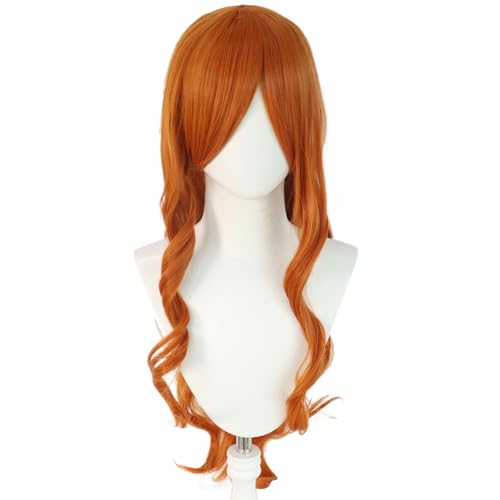 Description: ANOGOL Hair Cap + 32 in/80 cm Orange Long Wavy Cosplay Wig for Women Orange Cosplay Wig with Bangs for Costume Halloween PartyFASHION COLOR: OrangeCAP STRUCTURE: The size is adjustable and no pins or tape should be required. It should be fit on most people. All you should need to do is adjust the hooks inside the cap to the correct size to suit your head. MATERIAL: 100% Synthetic heat resistant Orange synthetic wig fiberPACKAGE INCLUDING:1 Orange Cosplay Wig +1 cap Hair Care:When the wig becomes dry, disheveled or not curly, the long Orange Curly wig also needs care. you can spray wig care solution over the wig 2 to 3 times.Remember to keep the wig off the solution for 15-25cm with small amount when spraying, especially at the center of the wig end. Comb the wig gently from the ends and do up the hair yourself.The inner side may get knotted sometimes,it needs your careful combing with specialized comb. 1.Gently comb the wig with your fingers2.Gently comb the wig from the end of the wig with special comb. 3.If the wig is tangled at the end, you can cut the knotted area directly. 4.To prolong the use time, it had better keep under 100℃. How To Wear:1. Tie your hair up to be a bun2. Stretch the wig cap upon your head3.Push all of your hair into the cap4. Tie up the cap 5. Put the wig on your head and pull the adjustable straps to accommodate your head