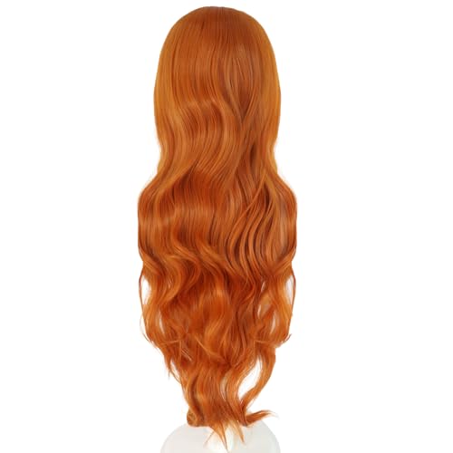 ANOGOL Hair Cap + 32 in/80 cm Orange Long Wavy Cosplay Wig for Women Orange Cosplay Wig with Bangs for Costume Halloween Party Long Ginger Wavy Wigs with Bangs