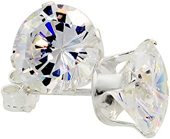 3 Pair Set Sterling Silver Cubic Zirconia Studs Earrings 8 mm 4 prong 4 carat/pair