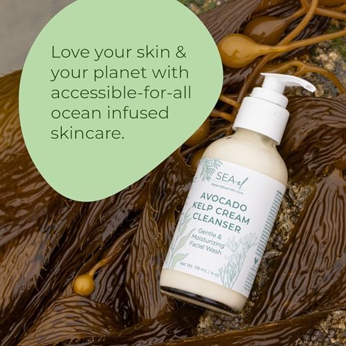 Sea-El Avocado & Kelp Cream Cleanser Non-Foaming Gentle Deep Cleanse to Purify Tone & Firm - Moisturizing Natural Face Wash for Women & Men - 4 Oz
