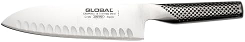 Global 7 inch Hollow Ground Santoku Knife - Lightweight Japanese Stainless Steel, Razor-Sharp Edge, Made in Japan, G-80