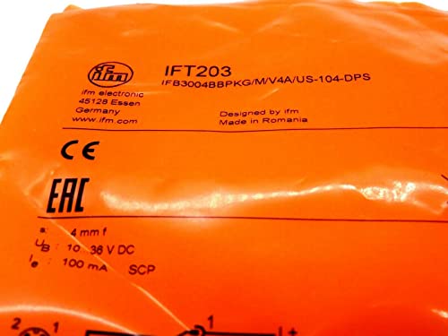 Ifm Ift203inductive Sensorsensing Range: 4 Mmoperating Voltage: 10 ... 36V Dccurrent Consumption: 10 Ma @ 24V Dcoutput Function: Pnp, Normally Openswitching Frequency: 800 Hzalt Id: Ifb3004bbpkg/M/V4a/Us-104-Dps