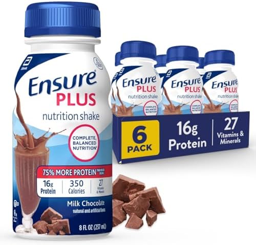 Ensure Plus Milk Chocolate Nutrition Shake | Meal Replacement Shake | Ready To Drink | 16g Protein and 27 Vitamins and Minerals | 8 fl oz - 6 Pack