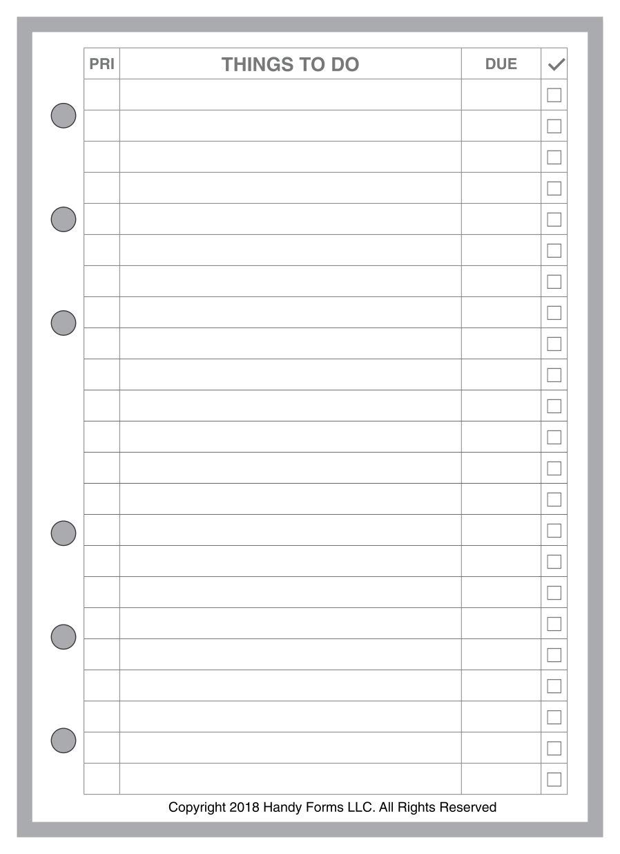 Personal Size Daily Task Planner Insert, Sized and Punched for Filofax Personal Notebook