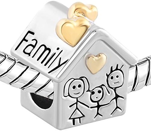 CharmSStory Plateado de plata Familia Corazón Amor Casa Cuentas para Brazaletes de Pulsera