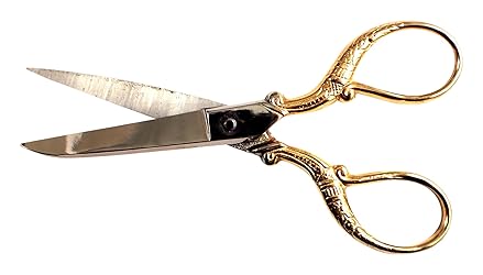 - 5.5 Inch decorative gold handle heirloom scissor. European floral design. Well balanced. Precision cuts.