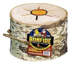 - Light 'n Go Bonfire Log. Create a bonfire with 1 match. No chemicals, just pure kiln dried beautiful white birch. With a paperboard fire starter. With its patented design, delivers a great fire. Safe for cooking, indoors or outdoors. Burns more than 1.5 hours. Can be enjoyed in a fire pit, chiminea, or fireplace. Take them camping, cook marshmallows, hotdogs, or drop a frying pan on the log for eggs. It weighs 15 lb. and is 8" height x 9" depth.