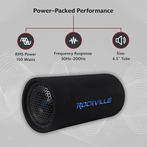 Rockville RTB65A 6.5" Powered Subwoofer Bass Tube, 300W Peak, Deep Bass, Built-In Amp, MP3 Input, Crossover, Vented Enclosure, Perfect for Car Audio