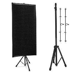 SMART SOUND CONTROL: Designed to minimize ambient noise and unwanted reverb, this sound deadening setup helps create cleaner, more controlled recordings. Ideal for vocals or instruments, it also reduces vibration for improved audio clarity. LARGE SURFACE AREA: The extra-large 47.2” x 23.7” rectangular wall-style foam panel provides reliable exposure to sound waves - capturing and isolating noise before it reaches your mic or instrument. PORTABLE DESIGN WITH TRIPOD: Lightweight yet stable, the tripod-mounted design offers adjustable height and placement flexibility. Great for mobile setups, home studios, or multi-use recording rooms. FAST, TOOL-FREE SETUP ANYWHERE: Designed for convenience, this sound panel assembles in minutes with no tools required. Perfect for temporary or mobile setups in home studios, podcast spaces, or remote recording locations. PERFECT FOR BEGINNERS AND PROS: Trusted by musicians, podcasters, DJs, and audio engineers, this isolation panel supports clear, professional results whether you’re tracking demos or streaming live content.