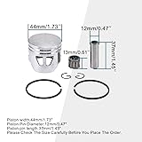Piston width 44mm/1.73";piston pin diameter 12mm/0.47";piston pin length 37mm/1.45",please check with your stock piston before purchase. Replacement for Zenoah G2D Goped Sport Liquimatic X-Ped Go-Quad Prevents gas from escaping from the top of the piston to provide better sealing.High toughness,corrosion resistance,rust resistance,durable. After strict quality control and testing, this piston kit has excellent thermal stability and wear resistance, which can effectively reduce wear and prolong the overall life of the engine, providing reliable protection for your ride. Warranty:we are always available to help our customers. if you are not satisfied with the orderplease leave us a message. wish you have a happy shopping experiencewe are committed to providing the best service.