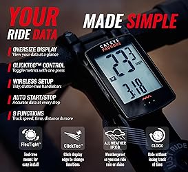 CATEYE Padrone Wireless Bike Computer – Oversized Display Cyclocomputer, Wireless Speedometer & Odometer, FlexTight™ Mount, Auto Start/Stop, Programmable Odometer