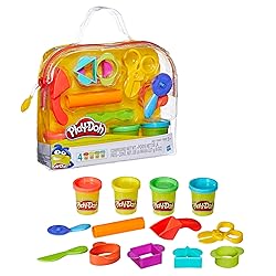 IT ALL STARTS WITH IMAGINATION: Preschool toys like this Play-Doh starter set can be great for kids gifts or creative activities for kids 3 years and up REUSABLE VINYL STORAGE BAG: For families on the go, this complete Play-Doh kit comes in a reusable bag that makes it a great travel toy and keeps all the pieces together 9 EASY TO USE TOOLS: Classic Play-Doh accessories let kids cut, stamp, roll, and create with this imagination toy 4 PLAY-DOH CANS: 2-ounce cans of blue, green, red, and yellow modeling compound (contains wheat) TRUSTED QUALITY: Rigorously tested for quality, Play-Doh compound is made primarily with flour, salt, and water, making it a great choice for arts and crafts for kids who love modeling clay (contains wheat)